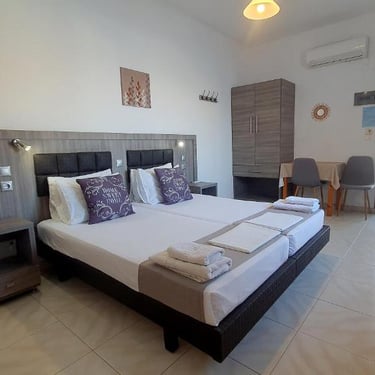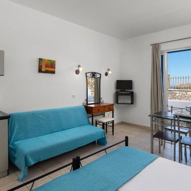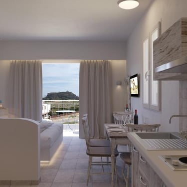 Studios are spotless and well-equipped with balconies overlooking the sea, all set in a quiet but super central spot. Ideal for couples looking for top location, privacy, and that classic Lindos vibe.