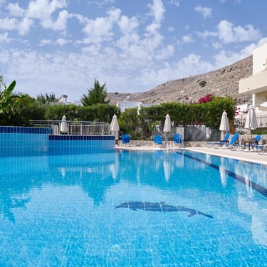 A relaxed, family-run hotel just above Lindos, perfect if you want a peaceful stay with a pool while still being close to the village and beaches.