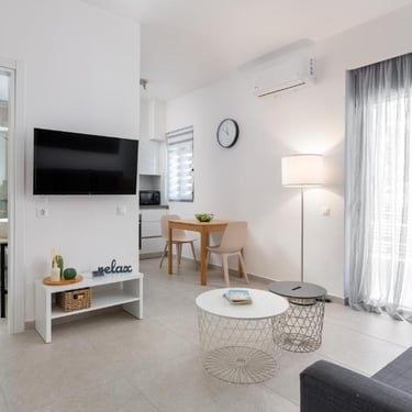 A contemporary apartment located in the heart of Rhodes Town, within walking distance of Elli Beach, Old Town, and Mandraki Harbour.