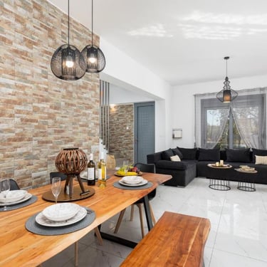 The villa features generous indoor living spaces, a private swimming pool and large outdoor terraces where guests can relax and enjoy the warm Mediterranean climate. With Lindos only a short drive away and several beaches nearby, Villa Livis is an excellent choice for families or groups looking for a comfortable villa stay in South Rhodes.