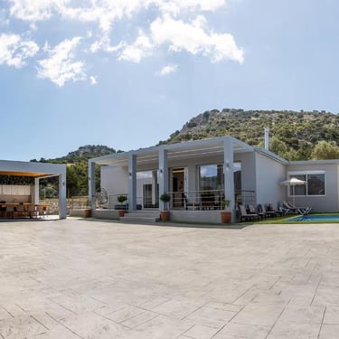 Villa Iliousa Grand is a stylish private villa located near the traditional village of Psinthos in the green interior of Rhodes. Surrounded by hills and countryside landscapes, the villa offers a peaceful setting ideal for travellers looking to relax away from the busy coastal resorts while still being within easy driving distance of beaches and Rhodes Town.