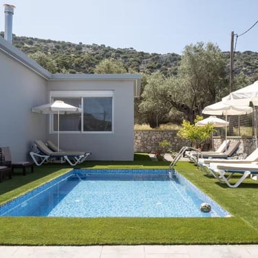 The property features a private swimming pool, outdoor terraces and comfortable living spaces designed for relaxing villa stays. With tavernas, local shops and countryside views nearby, Villa Pastida provides a great balance between a quiet village atmosphere and easy access to the island’s main highlights.